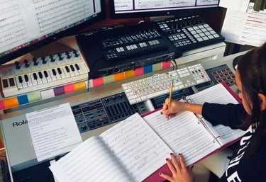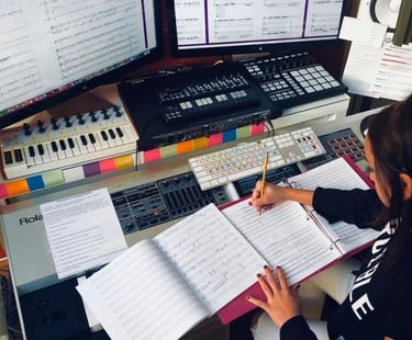 At Musiva Studio, we don't just create songs to play; we create a sonic identity that connects with the audience. We create a memorable experience that makes your brand, film, series, or anything it represents unforgettable, not only visually but also aurally. Every note, every chord, every sound used in our songs is meticulously studied and used to fit the visual identity, so that together we can build a unique identity in every aspect.